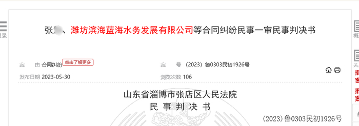 此后,潍坊滨海蓝海水务发展有限公司出现逾期支付,张老太多次索要无果,只得在当地法院起诉。