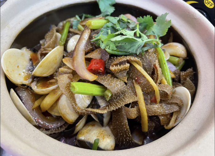 微辣又爽脆的毛肚炒海白。
