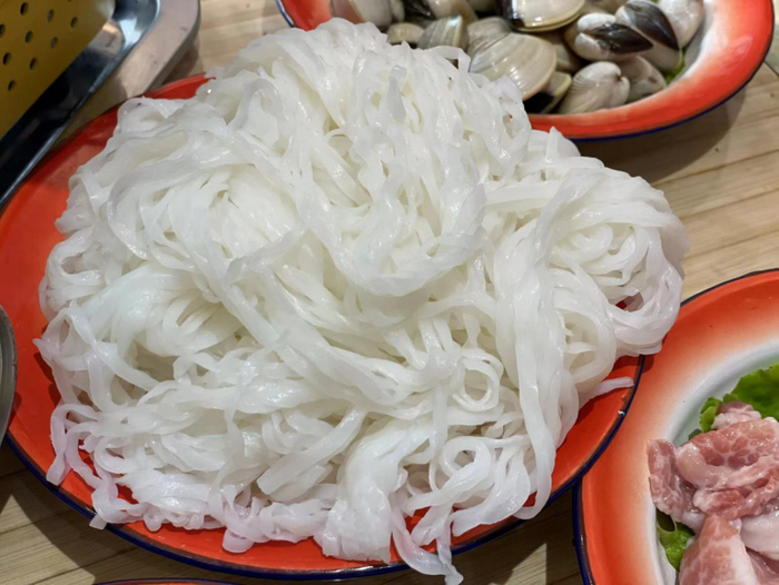 这两年不用去屯昌,在海口也有一些餐厅可以吃到这样的特色。在府城朱云路的王炸嗦粉打边炉餐厅是最早推出屯昌黑猪涮粉的餐厅之一。作为屯昌人,老板娘想把自己家乡的美味带来海口,让更多的人在海口就能吃到屯昌美味。