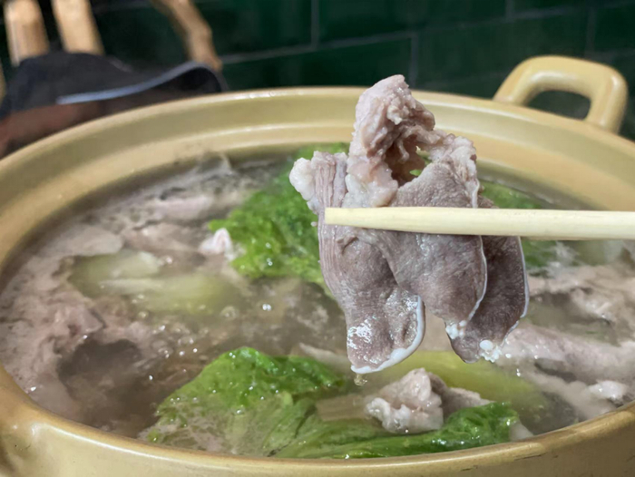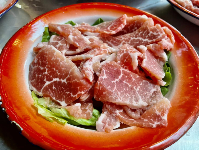 桌桌必点的肉是猪排骨上面的二层肉,这种肉带一点肥,但是吃起来不会很油腻。涮煮之后肉香很足,口感比普通部位的肉吃起来更弹一点。