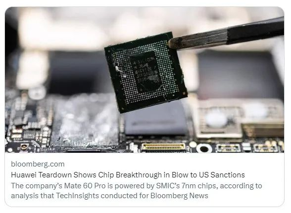 “该处理器采用了中芯国际最先进的7纳米芯片技术,这表明中国政府在构建本土芯片生态系统上正在取得进展。”彭博社在文中表示。