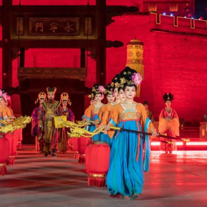 9月5日晚,在陕西省西安市城墙永宁门下,一场以盛唐礼仪文化为主题的旅游文化演出《梦长安——大唐迎宾盛礼》正在进行,霓裳羽衣,鼓乐齐鸣,“落吊桥、开城门、迎贵宾”,游客鱼贯而入,不时发出惊叹之声,让现场观众“入梦”大唐。