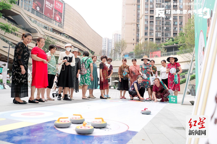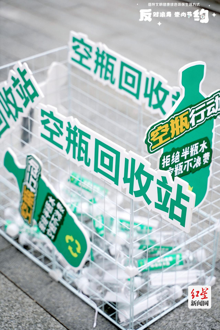 除了舞台环节,现场还设立了“文明餐桌互动美市”。美市以食物为由头设置了剩宴我打“包”、吃光盘中“菜”、以闲书换“蔬”、“空瓶行动”回收站四大互动区域,通过飞盘、冰壶等运动游戏的方式广邀市民前来吃“精神大餐”的同时发放公筷公勺等“文明盲盒”。