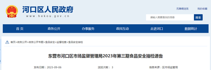 山东省东营市河口区市场监督管理局2023年第三期食品安全抽检通告