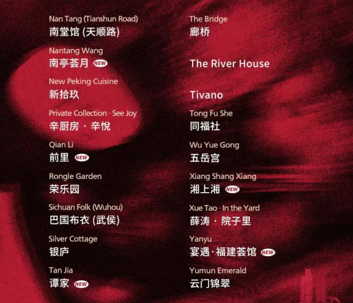 米其林指南入选餐厅增至36家(包括9家新上榜餐厅)。