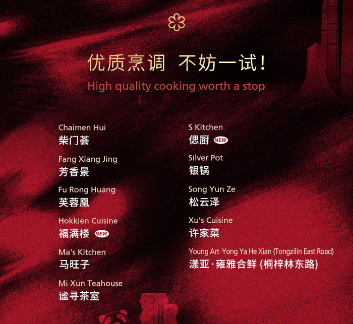 一星餐厅11家:柴门荟、芳香景、芙蓉凰、马旺子、谧寻茶室、银锅、松云泽、许家菜、漾亚·雍雅合鲜(桐梓林东路)、福满楼、偲厨。其中,福满楼、偲厨两家为今年新上榜的一星餐厅。
