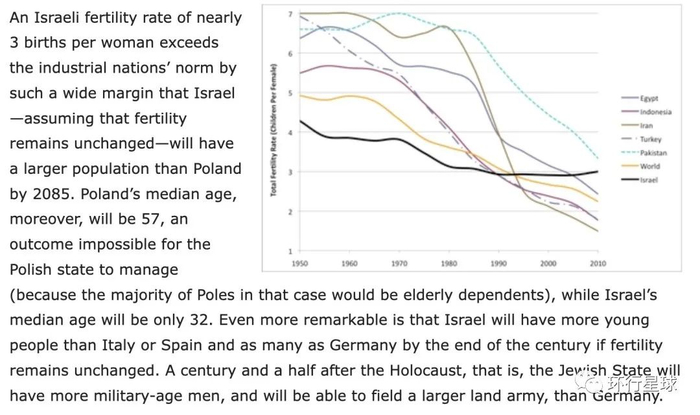 其次,以色列人口出生率已超越发展中人口大国,超过墨西哥、印尼、菲律宾等发展中国家。在以高出生率为特点的中东,以色列还超过了它的一众穆斯林邻居们,比埃及、伊朗、土耳其还高。