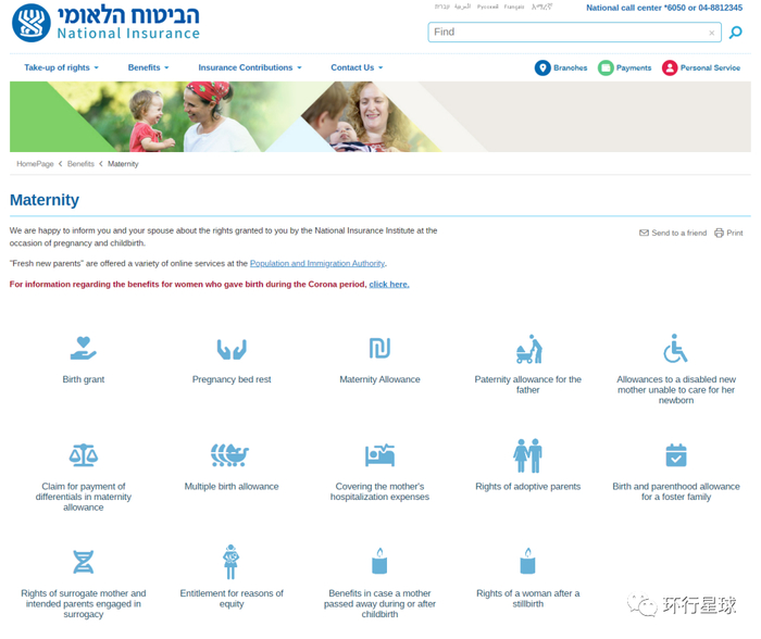 生育津贴制。女性生育孩子后一个月,可自动获得政府向其银行账户支付的津贴,津贴额度根据孩子数量调整,最高可达每月24,033以色列新谢克尔(约人民币4.6万元)。
