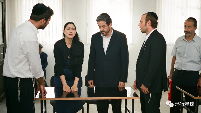 2014年以色列电影《诉讼》描述了哈雷迪犹太人在宗教法庭的离婚诉讼,妻子面对严重不公,绝望地争取离婚权利。图:《Gett: The Trial of Viviane Amsalem》