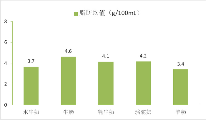 👉 羊奶的脂肪含量最低,均值为3.4 g/100mL;