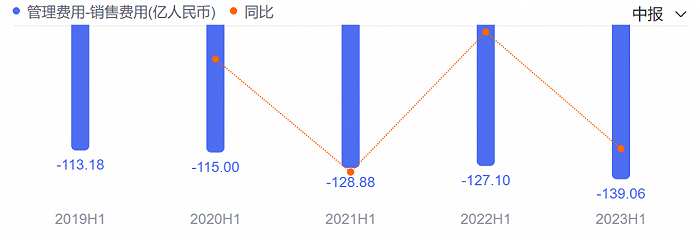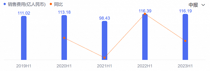 然而,在2023年上半年,这一趋势开始回升,蒙牛的销售费用达到139.06亿元,拉出近五年的新峰值,同比增长9.4%。且据公司方面表示,其中用于产品和品牌宣传的费用增加至约51.2亿元,几乎与2022年全年持平。