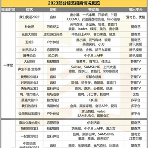 2023年至今,综艺招商终于支棱起来了。尤其是随着“浪姐”、“披哥”、《乐队的夏天》等强势内容回归,综艺市场也迎来更多品牌合作。
