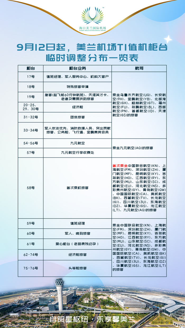 注意!海口美兰国际机场T1值机柜台将临时调整