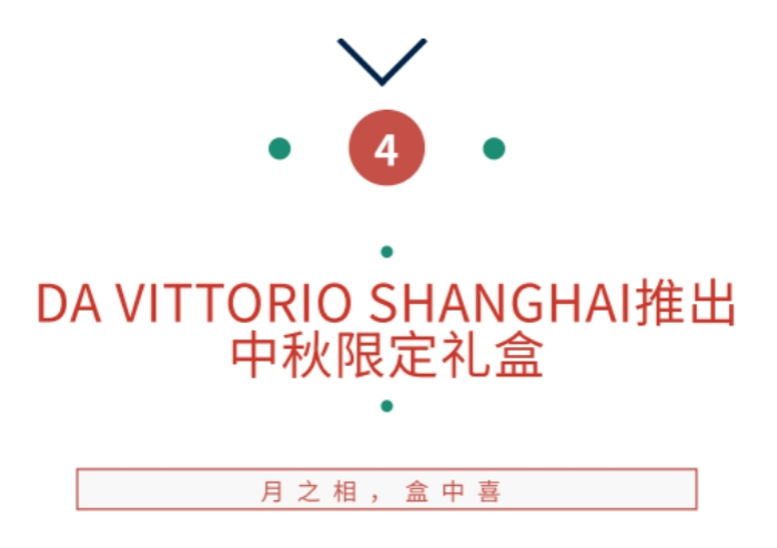 作为创立以来的第五个中秋节,在此团圆之年,DA VITTORIO SHANGHAI推出中秋限定礼盒。在意大利传统点心Crostata充盈着香草籽的芬芳饼干层中,口味推陈出新——【朔月】为黑巧克力与花椒口味,中国元素使得巧克力摆脱厚重,圆融平衡。【眉月】为覆盆子与柠檬味,酸甜果味使甜品轻盈入云。【弦月】为无花果与开心果味,两款意大利甜品里的经典元素奉上地道风味祝福。【圆月】为杏子与焦糖巧克力奶油味,体现Crostata的原初精髓,酸与甜碰撞出极致的圆满。此次礼盒中,覆盆子、焦糖、黑巧克力和开心果,四种天然风味的巧克力喷砂层,牢牢附着于点心表面,让每一口的味觉体验更加均匀完整。甜品外形更加可爱圆润、接近中式月饼造型,酥香依旧,适合用锯齿刀切块分食。