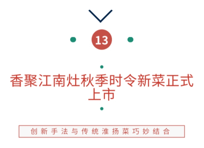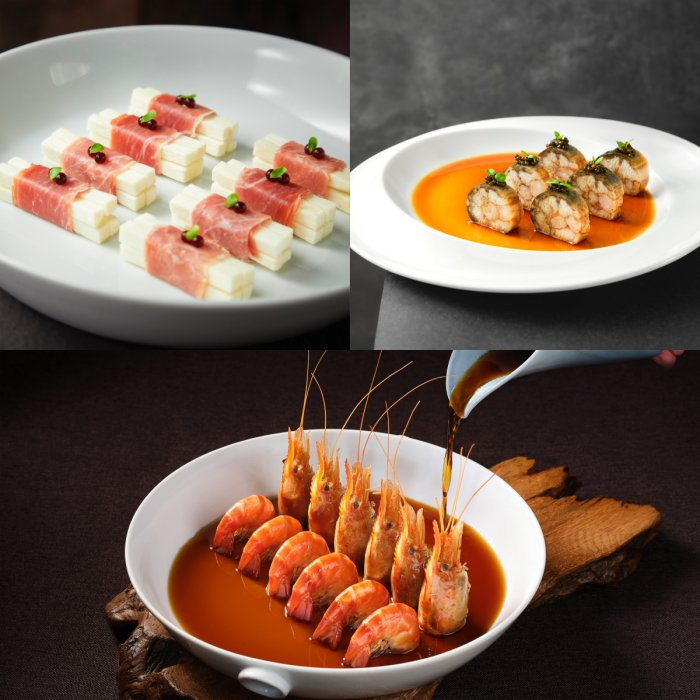9月1日起,秉持淮扬菜“不时不食”的传统理念,香聚江南灶行政总厨朱光盼推出一系列滋补秋日时令美馔。【江南熟醉罗氏虾】的每一丝虾肉都吸满陈年花雕酒与桂花干的醇美浓香。【鱼子酱醉双鲜】用新鲜的河鳗紧紧包裹鲜美的蟹粉及虾肉,在花雕酒中被彻底激活至鲜滋味,清甜中透着一丝酒香,让人食欲大开。【伊比利亚火腿棕榈芯】中的棕榈芯是一种特别而少见的食材,其生食时味道微甜,口感软嫩,并带有淡淡的坚果香气。主厨选用优质的棕榈芯搭配伊比利亚火腿,并点缀香醋粒提鲜提味,呈现出这道中西合璧的特色菜品。