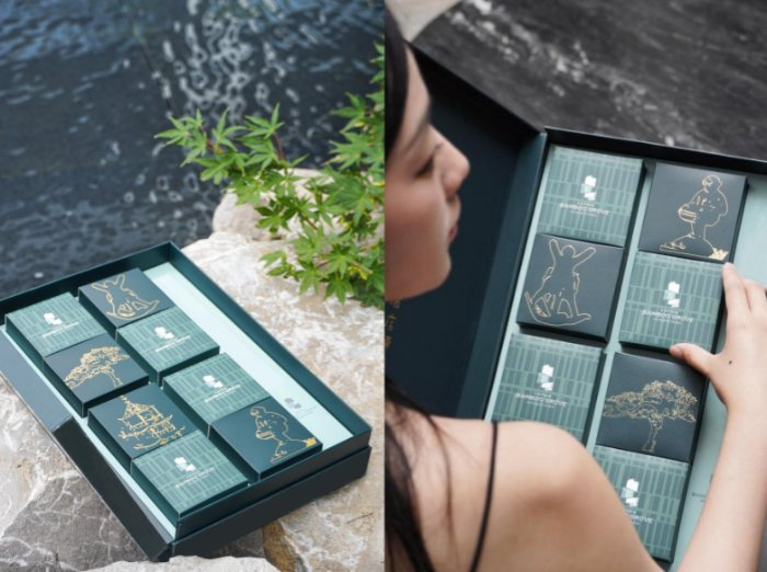 中秋即至,苏州金普顿竹辉酒店推出艺术款中秋月饼礼盒,灵感源自竹子元素,是老竹辉饭店记忆的延续,也是对现代艺术的全新诠释:封面灵感源于酒店宴会厅的艺术品—《插曲》,描绘了老竹辉饭店与苏州园林胜景。饼盒的设计则采用了艺术家谢艾格女士的《苹果的思考》与《奔》,赞颂苏州园林的《罗汉松》以及苏州的凌云古塔。在月饼的口味上,礼盒内包含XO干贝月饼、广式五仁月饼等共计6种口味,共8粒月饼,丰富选择满足不同味蕾需求。