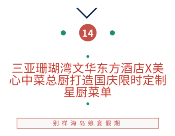 国庆假期来临之际,三亚珊瑚湾文华东方酒店特邀美心中菜总厨蔡伟平客座倚洋中餐厅,开启一段为期九日的经典粤菜美食之旅。总厨蔡伟平讲究鲜味的配搭、运用时令食材,将粤菜菜肴的最佳风味发挥到极致。此次客座,蔡伟平甄选应季海南本地食材,呈献多款翠园经典菜肴,如香芒贵妃虾球、金沙䲝鱼球、蟹肉珊瑚玉带子等招牌粤式菜品,也有备受赞誉的多款招牌点心,如鸡汤金鱼饺、燕窝鸡蛋挞、梨形咸水粿等。多款甄选套餐与粤式零点菜单,可以同时满足宾客家庭出行与商务宴请的多重需求。此次“寻鲜粤馔”定制星厨菜单将于2023年9月28日至10月6日限时呈现。