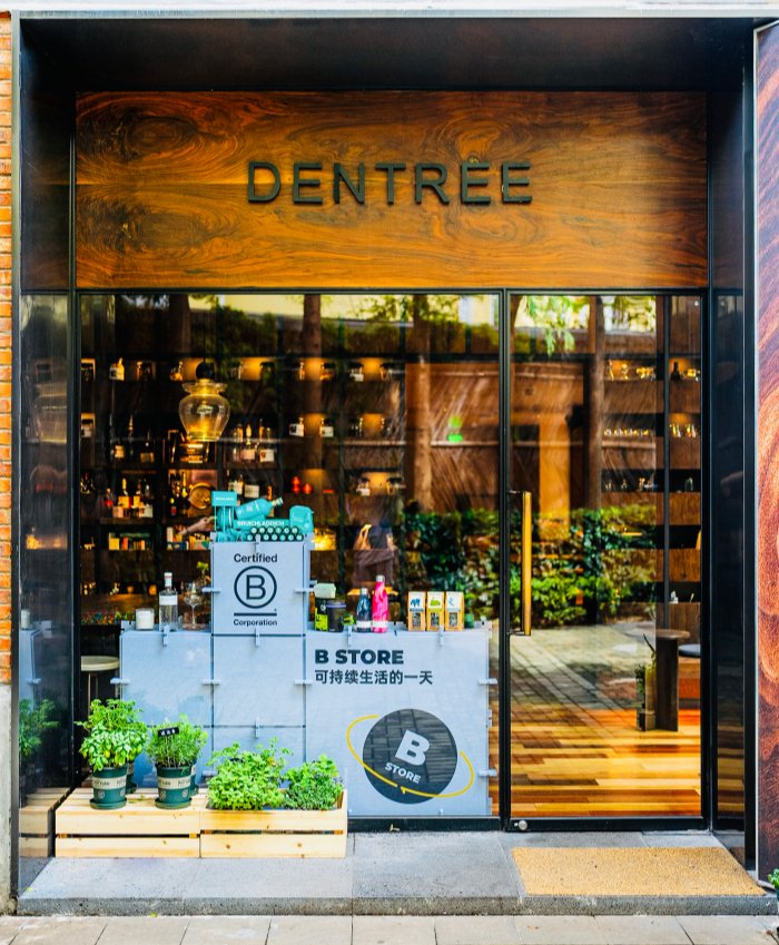 DENTREE 作为人头马君度携手筑酒师(Spirits Architects)联乘打造的旗下全球首个可持续发展主题酒吧,坐落于聚焦可持续发展实践和管理的建筑改造开发园区,在照明、电力、及库存管理上,都引进了智能检测系统以节约能源。除了建筑本身坚持可持续发展的原则,DENTREE 在饮品和菜式上也体现了对生态的高度关注,通过对原材料的谨慎选择和对资源循环率的优先考虑,其碳足迹大大低于行业平均数据三成。生态日之后的一周里,DENTREE 都以“可持续的一天”为主题,展示 B STORE 的可持续好物。
