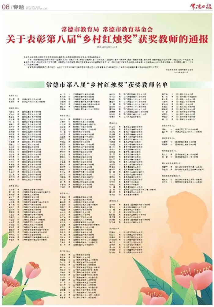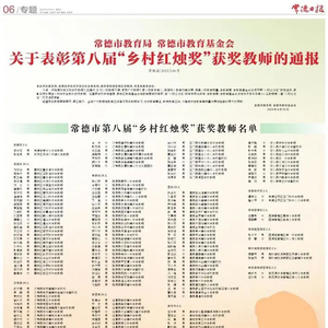 常德市第八届“乡村红烛奖”获奖教师名单公布→