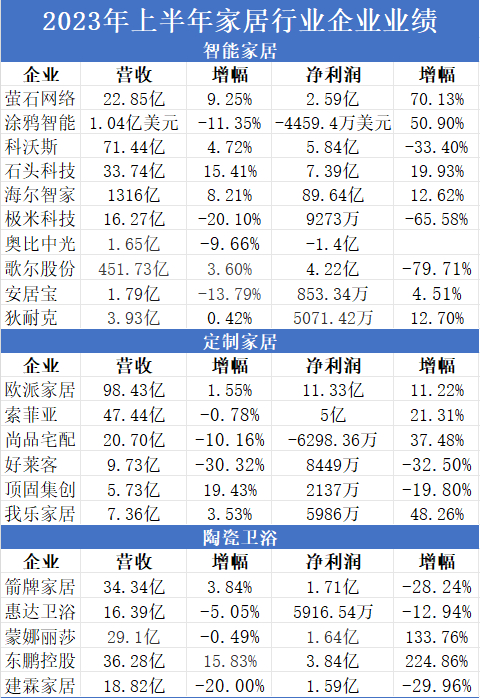 业绩数据是最直观的体现,进入九月家居企业2023年中期业绩披露已经结束,大部分企业如期发布财务报告。从家企成绩单来看,可以说是喜忧参半。