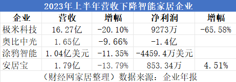 纵观2023年家企的中期成绩单,除了涂鸦智能、奥比中光、尚品宅配、久量股份出现亏损以外,其他企业均实现盈利。