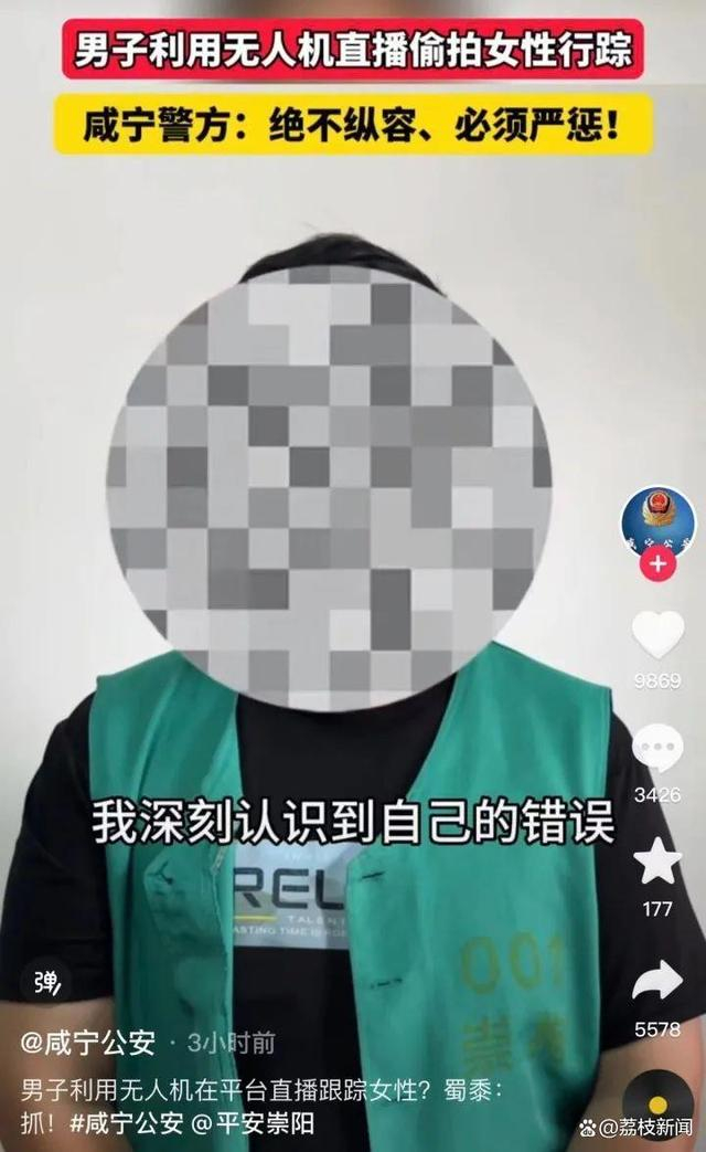 近日,湖北咸宁一男子直播时使用无人机跟拍女性回家,围观人数众多,不仅在直播中暴露被尾随女性家庭住址,还在直播间出言侮辱,有观众甚至对此起哄打赏。此行为经曝光后引起网友热议。9月6日,咸宁公安对此作出回应:该男子行为涉嫌寻衅滋事,已被行拘10日。该男子也在视频中道歉,而其直播账号已被封禁。