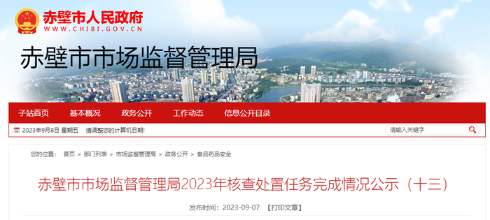 湖北省赤壁市市场监管局公示2023年核查处置任务完成情况
