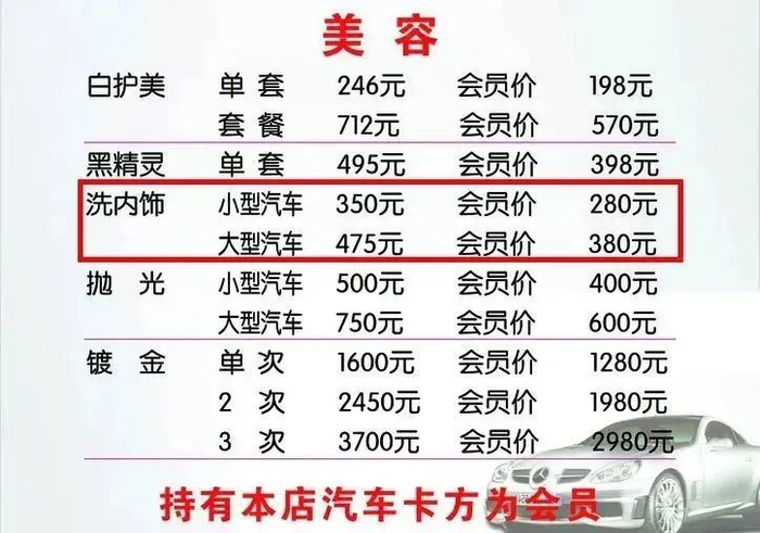 相比去洗车店洗内饰的价格