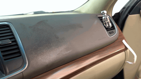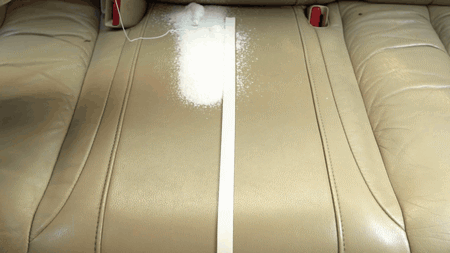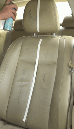 我们对一辆座椅已经老化、失去光泽度的汽车座椅做了试验,看看这个泡沫清洁剂的清洁效果如何: