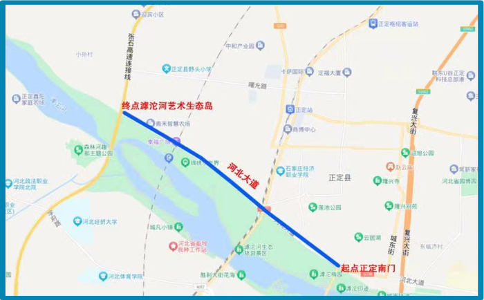 1、起止点:柳辛庄至滹沱河艺术生态岛