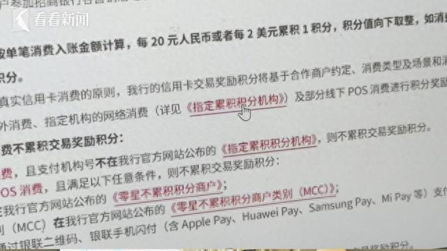 杨邹华 上海申道律师事务所主任律师:它的规则都写得比较细,事实上我消费者都很难找到相关规则,因此在这种情况下,也就是对消费者知情权的侵犯。我认为银行应当在显著位置,或者信用卡发卡章程当中,明确以红色字体来进行标注,因为(微信支付宝)不是特殊消费习惯,而是普遍消费习惯。