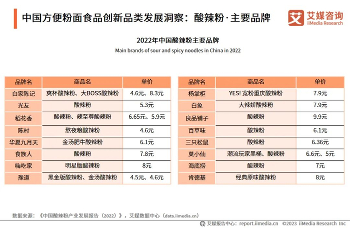 中国方便粉面食品创新品类发展洞察:酸辣粉·主要品牌