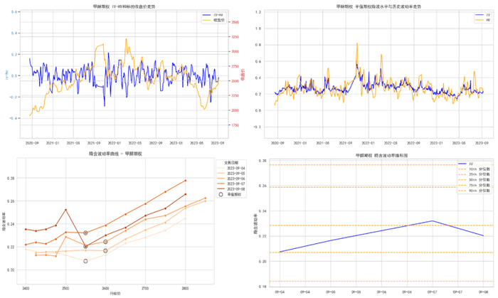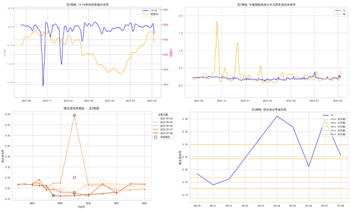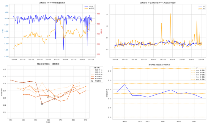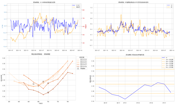 波动率在期权定价和交易中起着关键作用,尤其是隐含波动率(IV)和历史波动率(HV)。隐含波动率是对未来波动的市场预期,而历史波动率则是过去波动的测量。当IV远高于HV时,可能意味着期权被过度定价。反之,如果IV远低于HV,可能意味着期权相对便宜。根据IV-HV差值回归模型,可以选择在合适的IV或HV值进行套利交易。同时两者差值的增大都反映了对未来市场的不确定性增大。