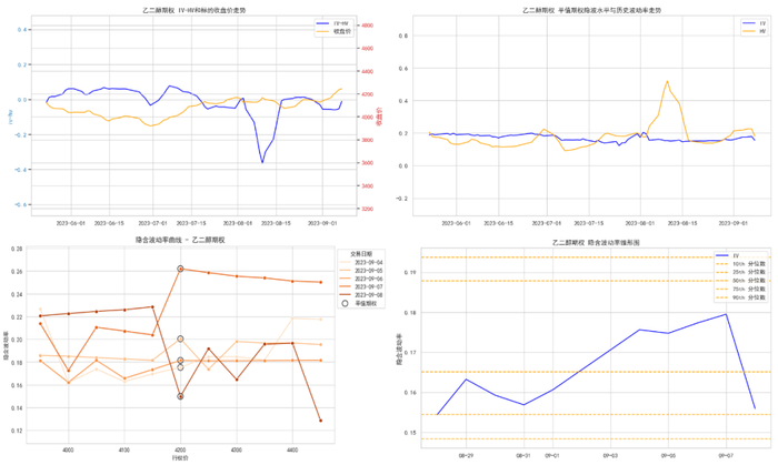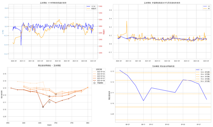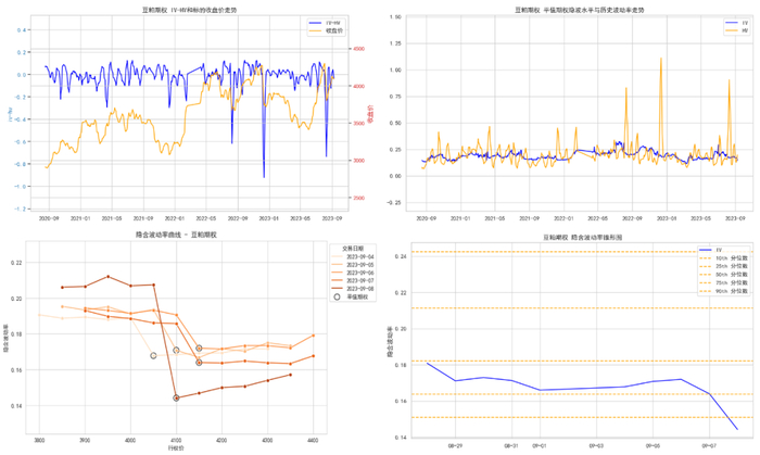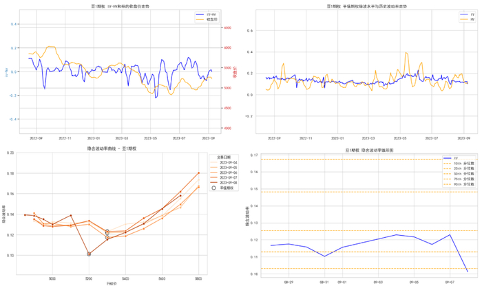 波动率回顾:本周农产品&软商品类商品期权各个品种主力合约隐含波动率,棕榈油期权和豆油期权创历史新低,而白糖期权和豆2期权则处于较高历史区间。