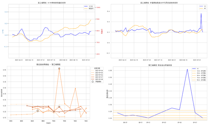 本周四是大商所所有的商品期权的最后交易日。苯乙烯期货行情的波动配合苯乙烯期权逐渐临近的最后交易日也使得EB2310-C-9300这张合约走出了过山车式的末日轮行情。在9月6日夜盘,这张合约甚至一度推高至135.5元的价格(涨幅较当日最低价高达135倍左右),但最后由于苯乙烯期货价格停滞在了9268点位。导致本次末日轮中最引人注目合约价值归零,未能实现由虚转实的蜕变。