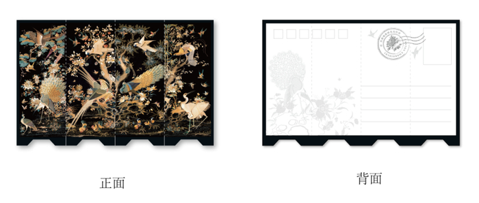 黑缎地广绣花鸟挂屏明信片折叠后可立起,秒变一副精致袖珍版挂屏。