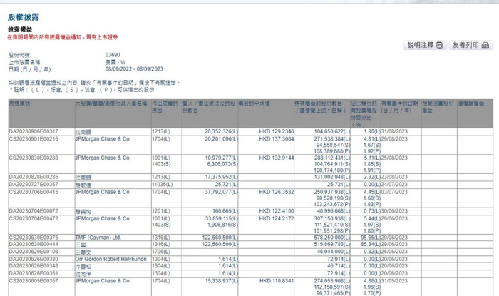 据港交所权益披露资料显示,8月31日,红杉中国减持美团-W股票,持股比例由2.32%降至1.86%,交易均价为129港元/股,共减持2635万股,涉资约34亿港元。