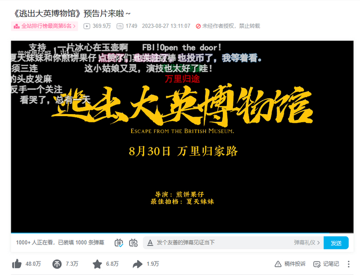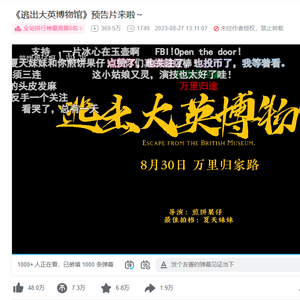 社交媒体上,“请大英博物馆无偿归还中国文物”冲上了热搜第一;还有自媒体博主拍摄了《逃出大英博物馆》的小短片,一分钟的预告就收获了300多万的观看量。