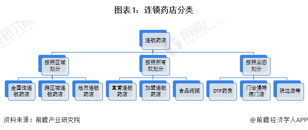 按连锁区域不同划分,可分为全国性连锁药店、跨区域连锁药店和地市连锁药店;按所有权不同划分,可分为直营连锁药店和加盟连锁药店;按照业态划分,可以分为DTP药房、门诊慢特病门店、院边店等。