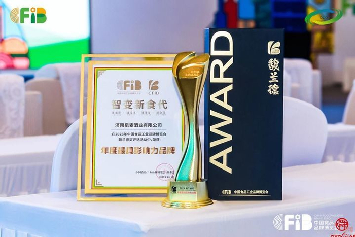 源自泉城的甄选佳酿!济南泉麦酒业有限公司荣获2023年中国食品工业品牌博览会馥兰德奖“最具影响力品牌奖”