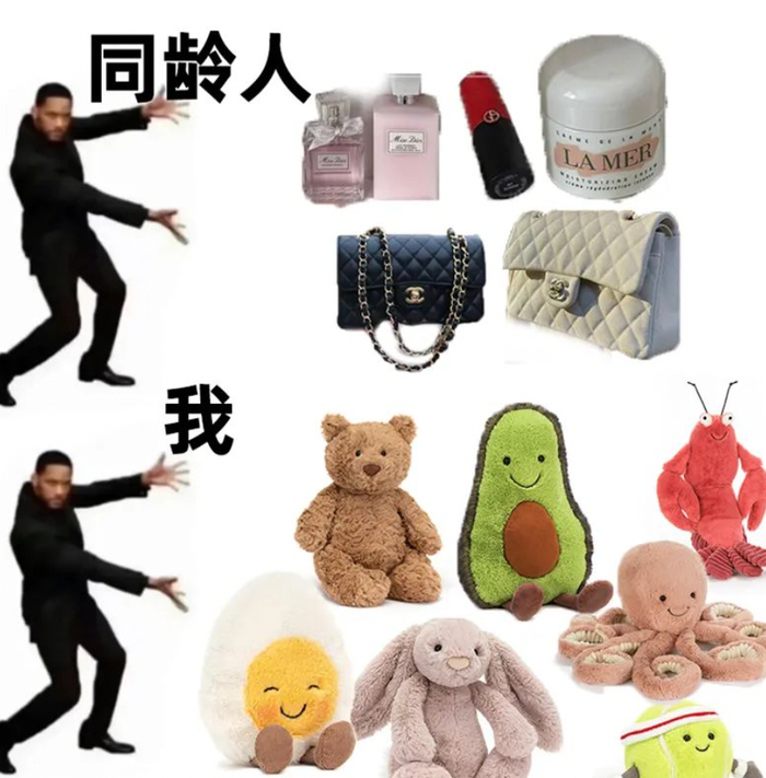 打工人抱着被毛绒化的各种物体,在社交平台上写下“已经不想和没有jELLYCAT的人说话了”的句子——但发疯只是表象,和毛绒玩具共情、有被安抚到,才是内核。