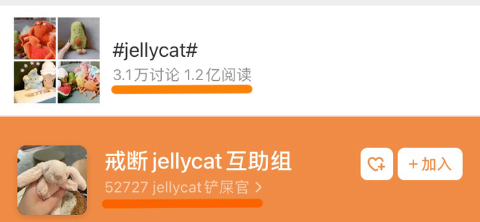 因为太过喜欢把玩,以至于很多年轻人需要戒断。关于jELLYCAT的热搜话题,讨论度动辄上亿。在某瓣上,光是参与“戒断jELLYCAT”小组的成员就有5万多人。