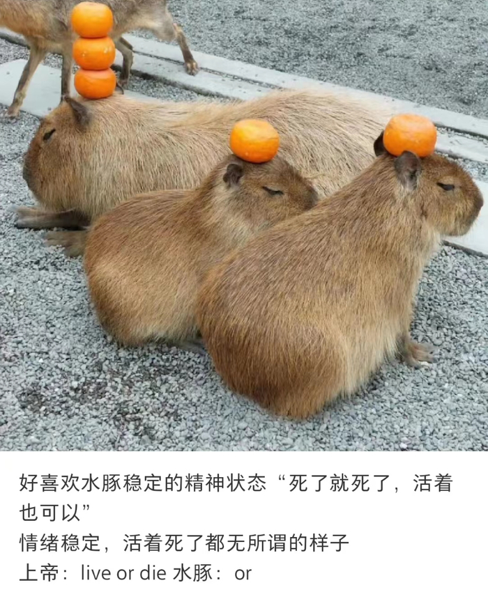 另一种是永远情绪稳定的水豚型人格,主打一种要死不活的松弛感。