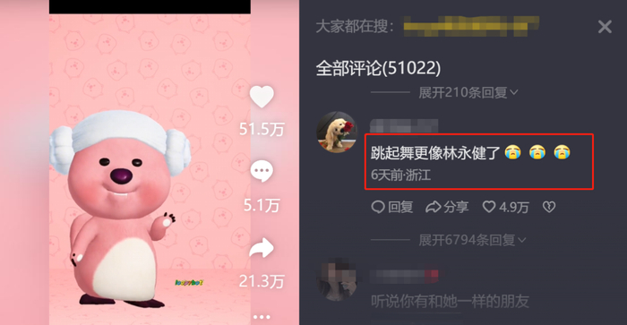 此前loopy视频评论区更多是喜欢的人在夸呆萌、有趣,如今已经挤满了快乐玩梗的路人——