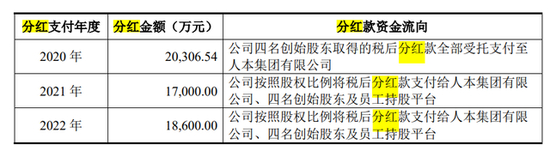 对此,人本股份在答复问询中称,其中,2020年公司四名创始股东取得的税后分红款全部受托支付至人本集团有限公司,具体为借出。2021年、2022年,公司按照股权比例将税后分红款支付给人本集团有限公司、四名创始股东及员工持股平台。
