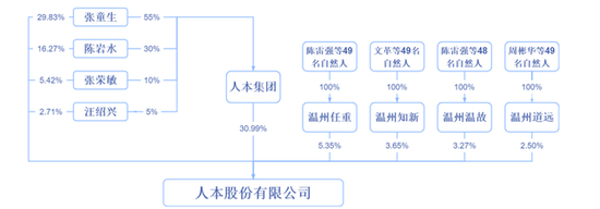 截至本招股说明书签署日,人本集团直接持有发行人 1.2亿股股份,占发行人本次发行上市前股份总额的 30.99%,为发行人的控股股东人本股份。实控人为张童生,直接和间接合计持有人本股份46.87%的股份,控制人本股份60.82%的表决权。其他几位股东分别为陈岩水、张荣敏、汪绍兴。