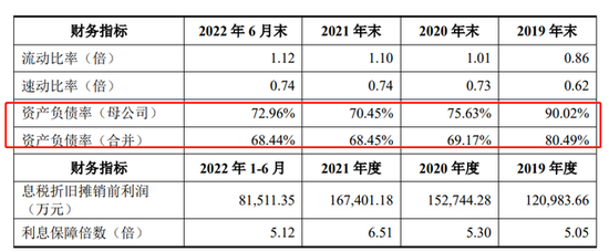 截至 2022 年 6 月末,人本股份的资产负债率为 68.44%,公司负债总额 95.68亿,其中流动负债 78.8亿,占比 82.36%,非流动负债 16.8亿,占比 17.64%。