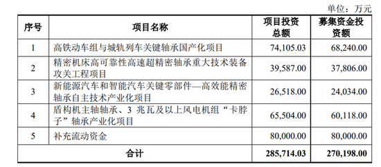 招股书显示,本次IPO,人本股份拟募资27亿,用于高铁动车组与城轨列车关键轴承国产化项目(6.82亿元),精密机床高可靠性高速超精密轴承重大技术装备攻关工程项目(3.78亿元),新能源汽车和智能汽车关键零部件—高效能精密轴承自主技术产业化项目(2.40亿元),盾构机主轴轴承、3兆瓦及以上风电机组“卡脖子”轴承产业化项目(6.01亿元),以及补充流动资金(8亿元)。