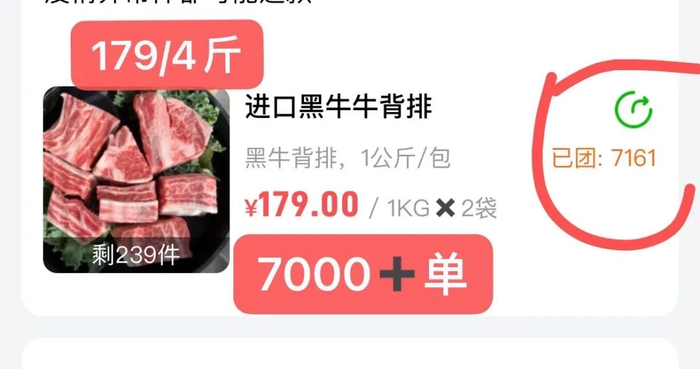 先对比一下卖了7000+单的牛肋排: