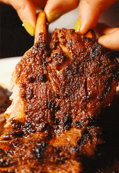最香的莫过那一口贴骨肉,一口下去,软糯的筋膜,焦化酥脆的软骨还有Q弹的贴骨肉组合在一起。